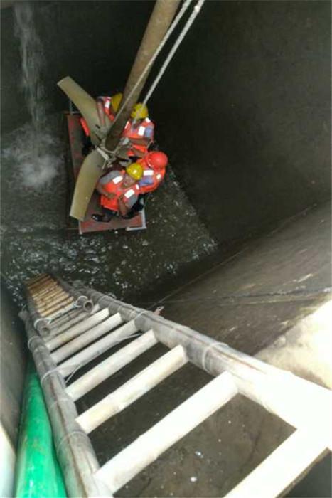 3.5米,需在水下搭建工作平臺(tái);三是攪拌機(jī)槳葉較重,需在高效池面用繩索綁定吊穩(wěn)槳葉,以確保拆卸安全,整個(gè)槳葉拆卸過程相當(dāng)困難。