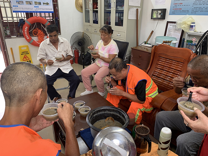 近段時(shí)間連日高溫,驕陽似火,酷暑難耐,但仍有一群人奮戰(zhàn)在高溫中,堅(jiān)守崗位,用辛勤的汗水和默默地付出,生動(dòng)詮釋著他們的職業(yè)精神??崾畋迫?,真情暖人。工作人員先后走訪了在黃洞橋、部隊(duì)橋、上游段都田村工作的工人,親手將降暑飲品送到一線環(huán)衛(wèi)工人手中,對(duì)他們頭頂烈日、堅(jiān)守崗位、一絲不茍的工作態(tài)度表示衷心的感謝和崇高的敬意。每到一處,工作人員都會(huì)與工人噓寒問暖,拉家常、談變化,關(guān)切地詢問他們的生活、身體、日常飲食起居情況,了解他們當(dāng)前所面臨的困難,并再三叮囑他們?cè)趫?jiān)守崗位的同時(shí),注意防暑,合理安排工作和休息時(shí)間,確保健康平安度夏。
