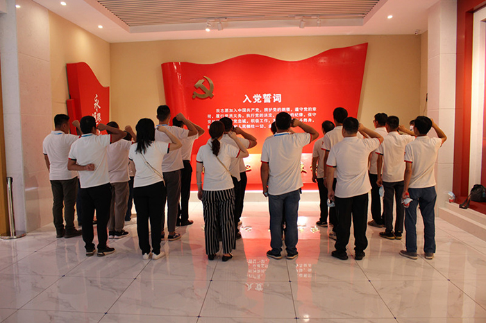 參觀伊始,在黨支部副書(shū)記蔡建生同志領(lǐng)誓下,全體黨員重溫入黨誓詞?!拔抑驹讣尤胫袊?guó)共產(chǎn)黨,擁護(hù)黨的綱領(lǐng),……隨時(shí)準(zhǔn)備為黨和人民犧牲一切,永不叛黨?!辩H鏘有力的宣誓聲,響徹展廳。在講解員的引導(dǎo)下,全體人員依次參觀了“從嚴(yán)治黨、正風(fēng)肅紀(jì)、警鐘長(zhǎng)鳴、防微杜漸、崇廉尚德、海韻清風(fēng)”6個(gè)版塊的教育內(nèi)容。展館內(nèi)陳列豐富,展示新穎,一個(gè)個(gè)典型案例和一幅幅真實(shí)畫(huà)面的呈現(xiàn),彰顯了中國(guó)共產(chǎn)黨全面從嚴(yán)治黨、正風(fēng)肅紀(jì)、反腐懲惡的決心,揭示了涉案人員知法犯法、腐化墮落的思想根源和蛻變軌跡,發(fā)人深省,令人震撼。大家通過(guò)講解員的解說(shuō)和參觀,真正接受了一次思想的洗滌和心靈的凈化,通過(guò)“一物一反思,一步一警示”,真正得到省悟和警示。